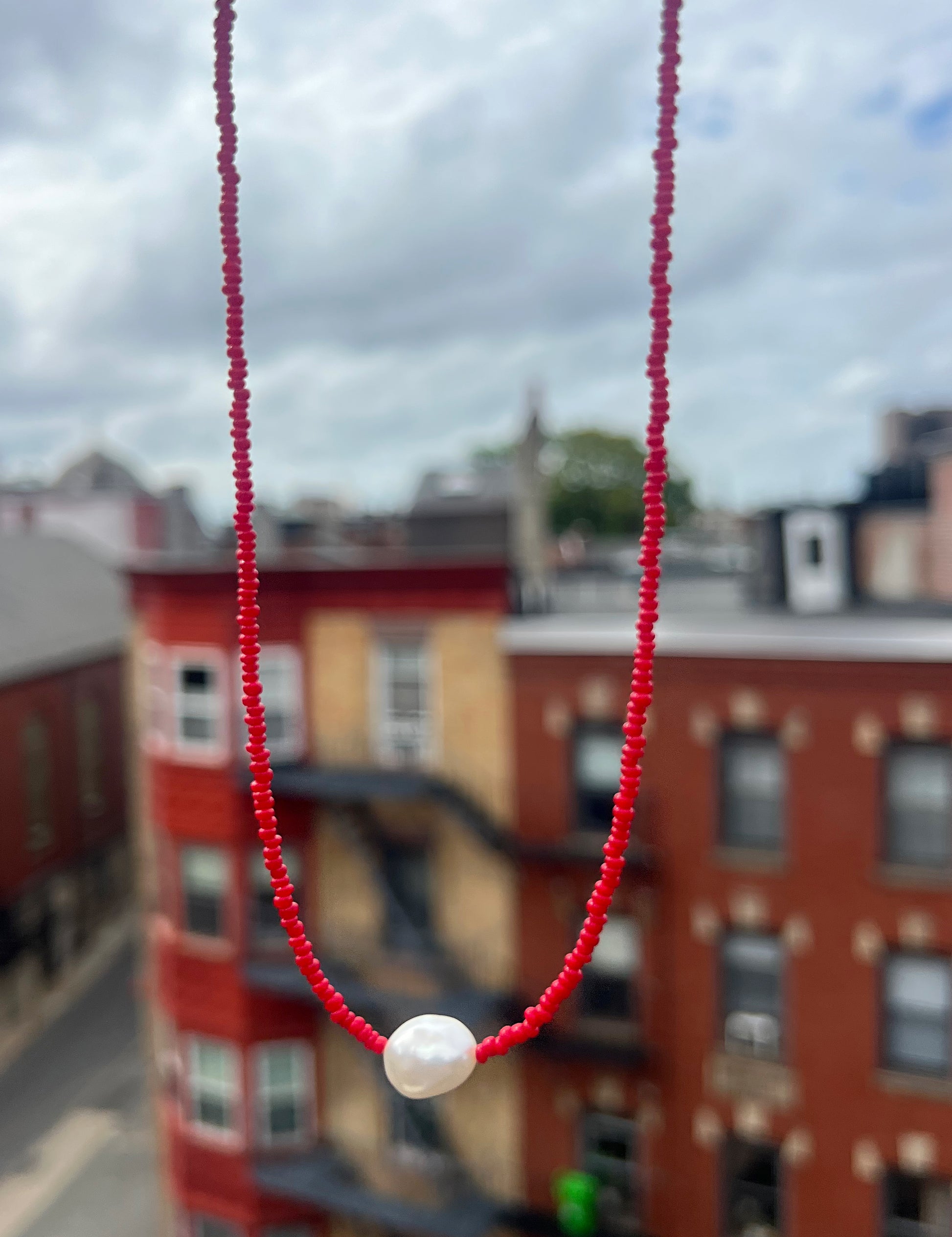 Red Seed Bead & Freshwater Pearl Choker