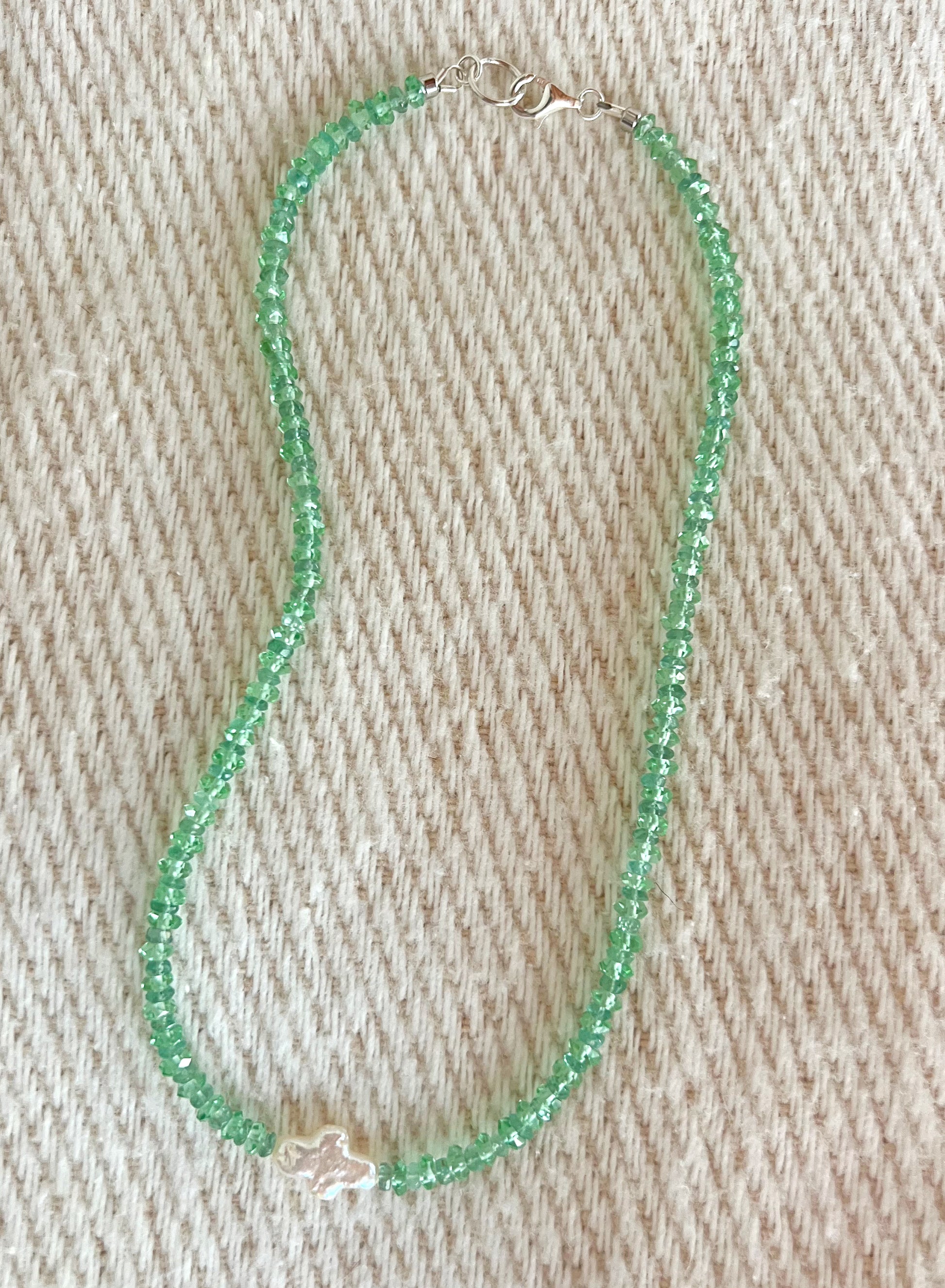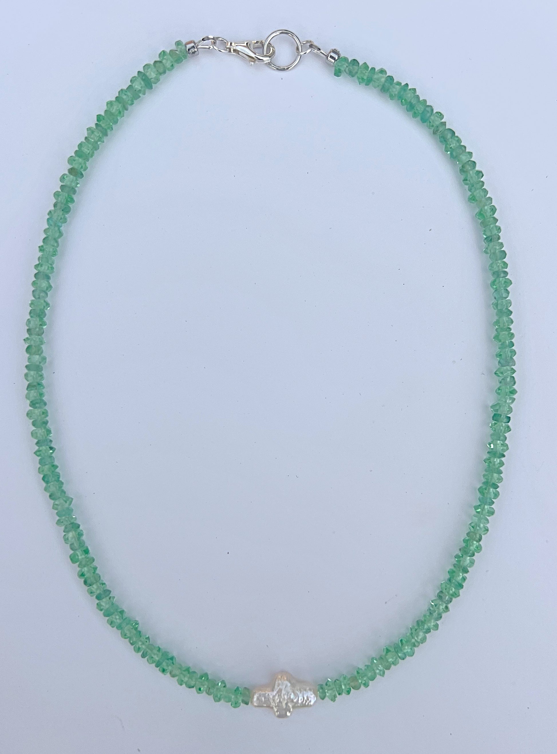 Teal Green Crystal & Freshwater Cross Pearl Necklace